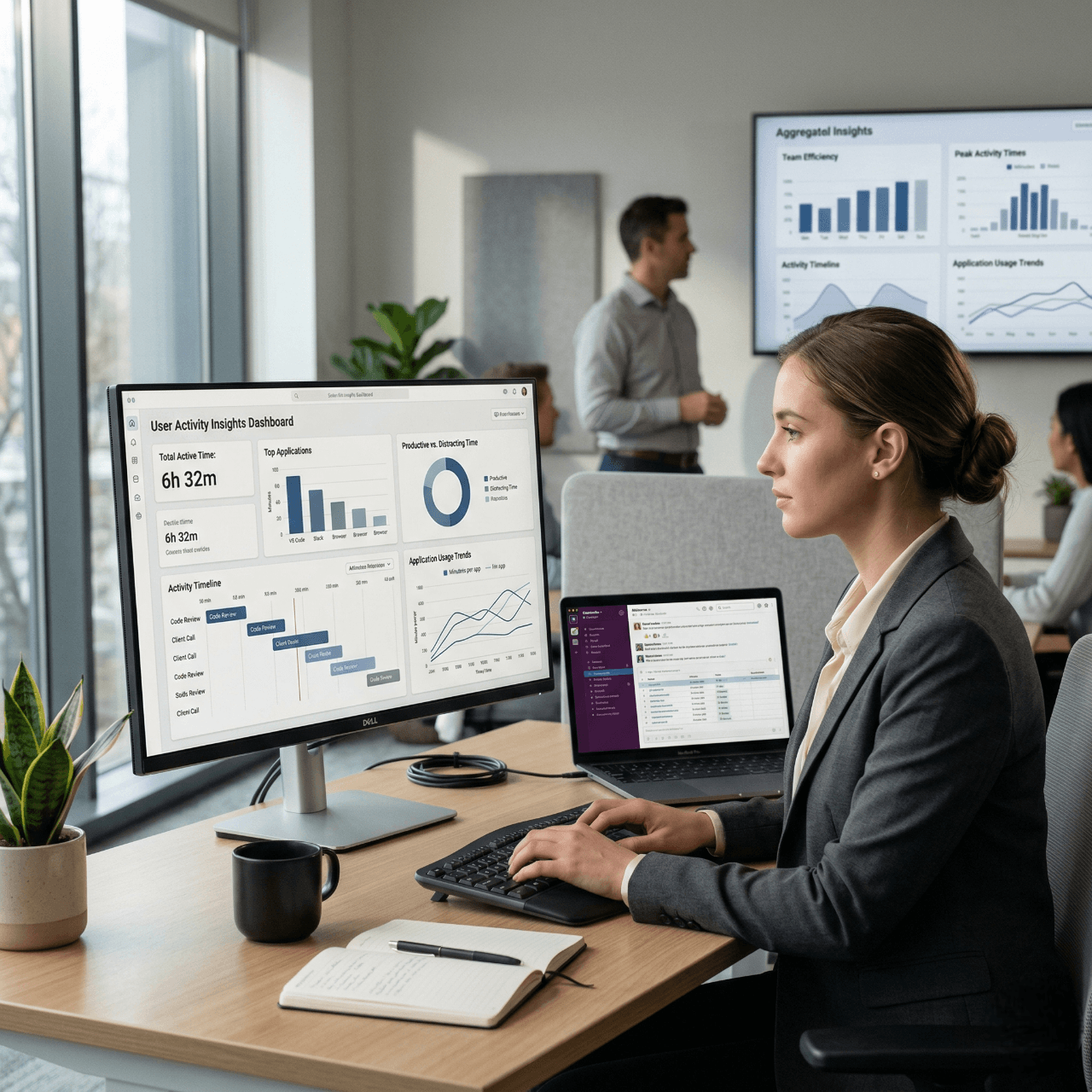 Expand beyond traditional time tracking with fully customizable, live intelligence on computer activity, app usage, screenshots, and productivity patterns — all secured inside your infrastructure.